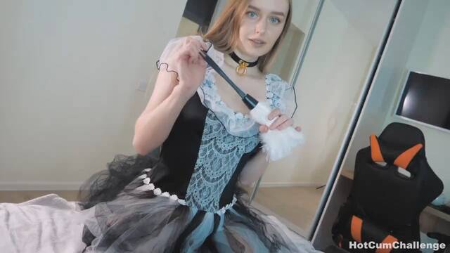 Надев странную пышную юбку, девушка пришла в спальню к парню, чтобы соблазнять его на секс. Она нарядилась в то, что нагла в своем гардеробе и это было не настолько важно для пацана, особенно, когда сучка взяла пенис в ротик. Она щекотала его язычком возле чувствительной уздечки и дарила ни с чем несравнимые ощущения. Чувак достиг сказочного оргазма и русая милашка осчастливила его, приободрив минетом на весь день.