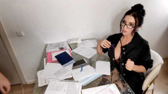 Женщина, работающая в офисе, только рада отвлечься от работы, поэтому раздевается перед парнем, который с ней флиртует. Показывая чуваку роскошное тело, грудастая брюнетка ложится на стол и берет пенис за щеку, приступая к горячему минету. Так как стройная баба в чулках классно сосет, она пробуждает крепкий стояк и просит секса раком. Ее киска до упора заполняется твердым хером и красавица вне себя от радости.